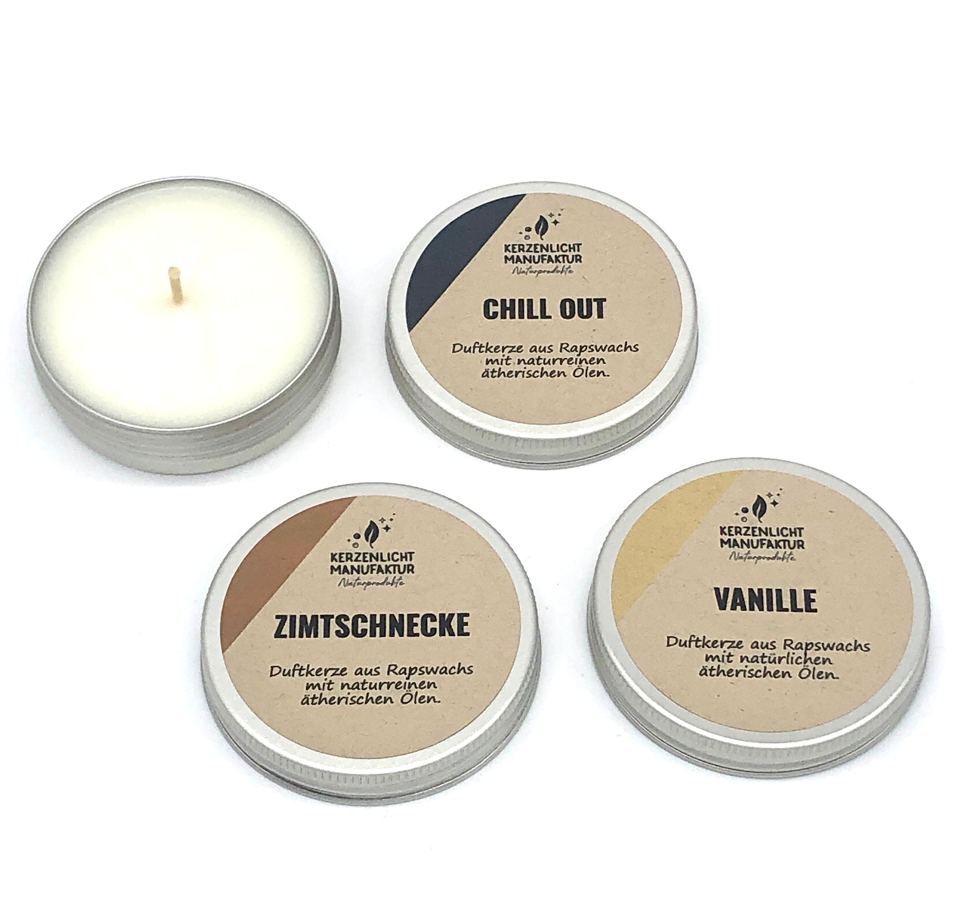 - Behälterkerzen: Nicht berühren, kann heiß sein