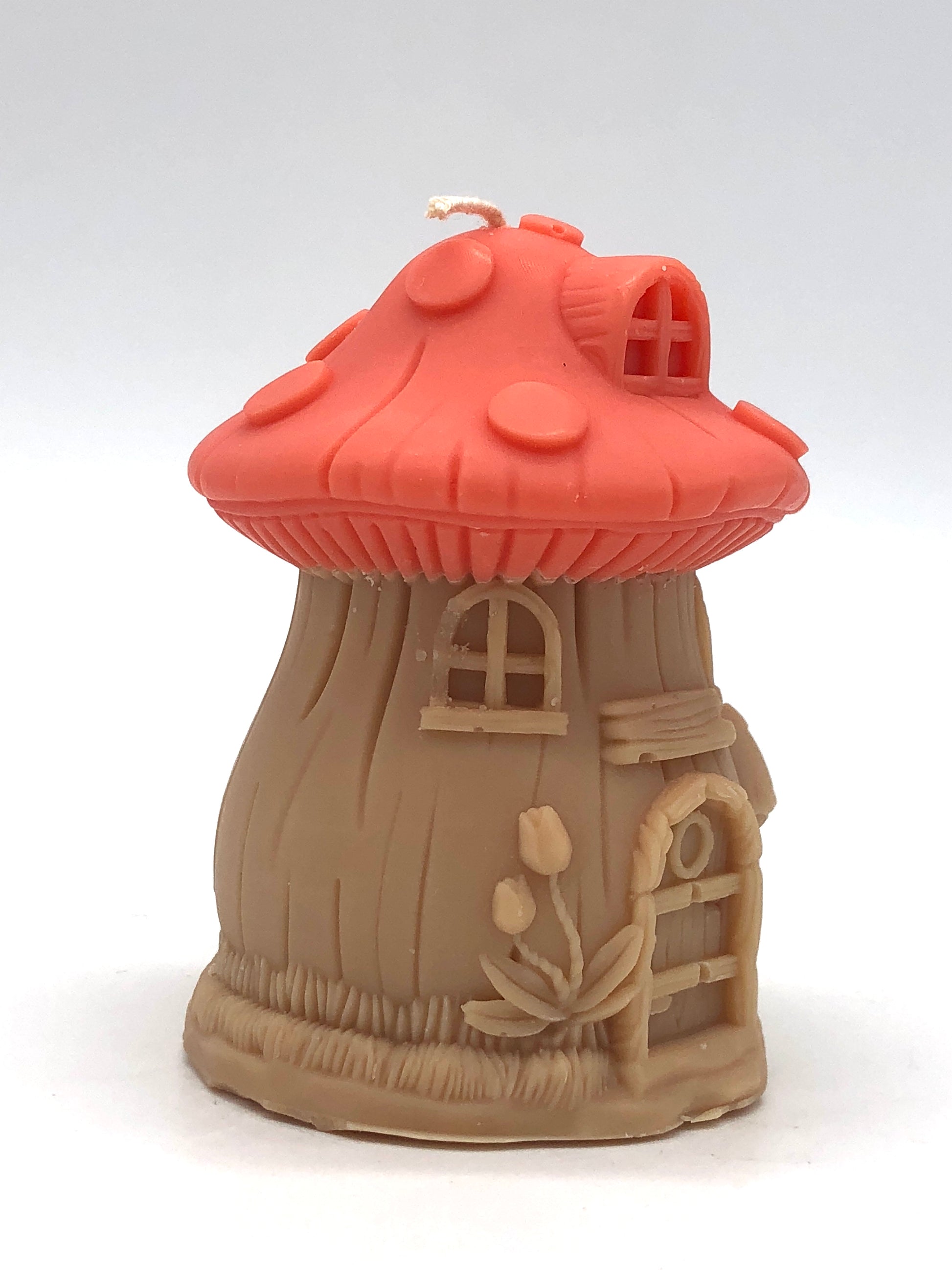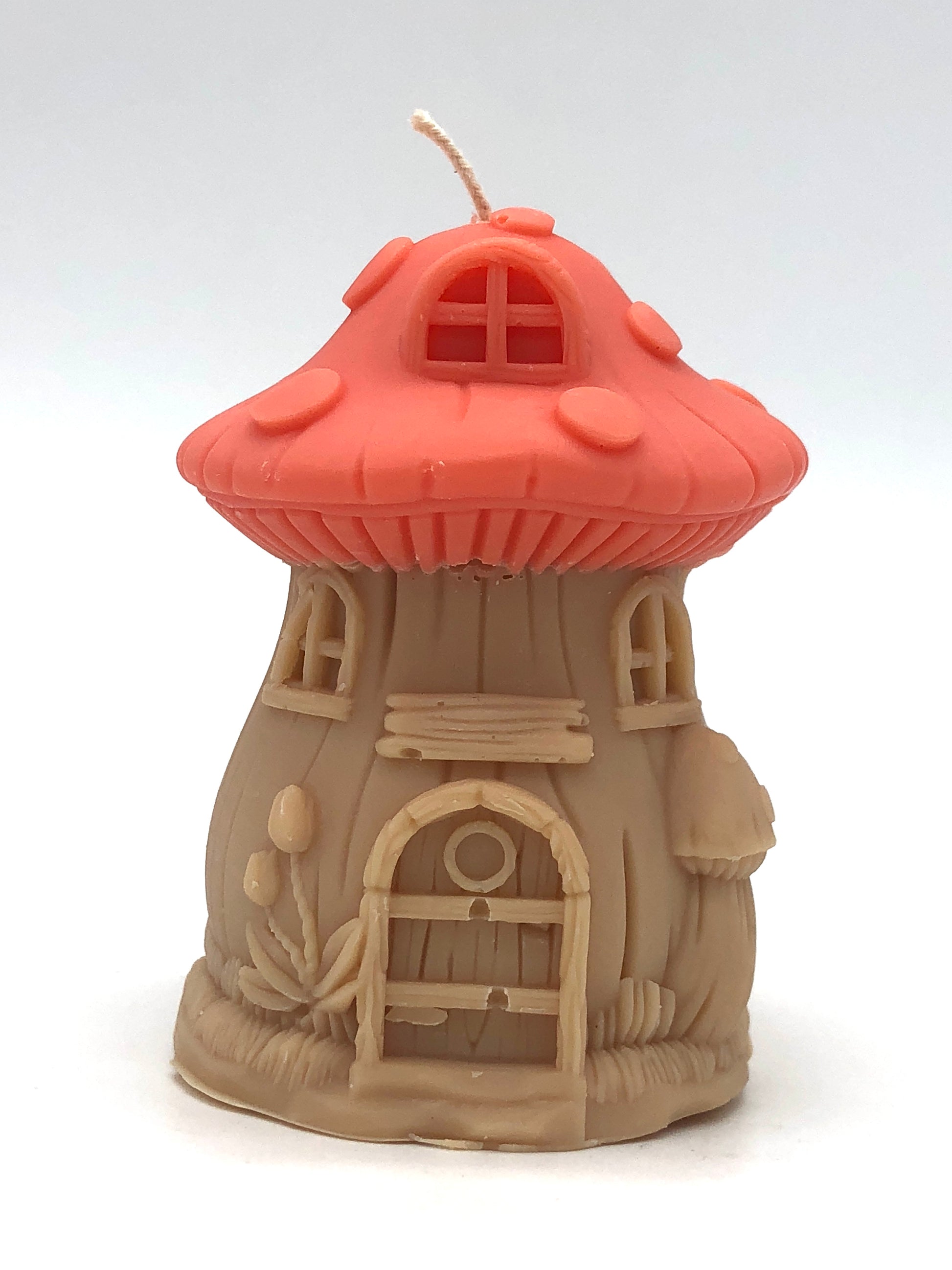 Das besondere Design der Kerze ahmt die Form eines detailreichen Pilzhauses nach, komplett mit einer Tür und einem kleinen Fenster. Die organischen, organisch geschwungenen Formen und Konturen erinnern an die Zauberwelt des Waldes und lassen Ihre Fantasie schweifen.